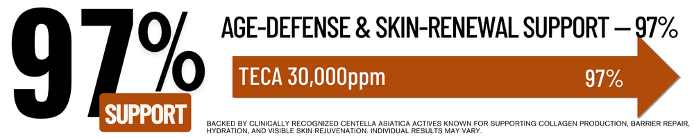 TECA (Titrated Extract of Centella asiatica 30,000ppm), Collagen, Elastin, Hyaluronic Acid, plus a blend of skin-revitalizing actives and moisturizers designed to hydrate, firm, and visibly renew the skin.